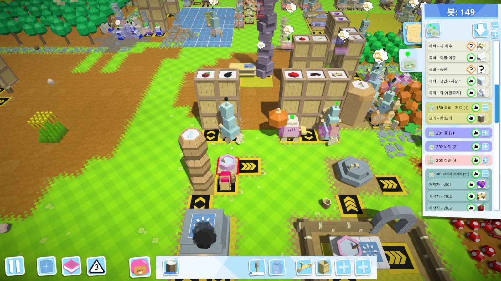개척자의 비위를 맞춰주려면 열심히 로봇을 만들고 자동화를 꾸준이 해야 합니다.