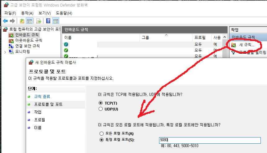 만약 외부 9080 포트를 내부 8080 으로 연결하고 싶다면