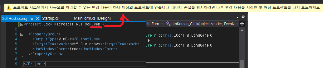 솔루션 탐색기에서 프로젝트를 더블클릭해서 '*.csproj' 파일을 열어줍니다.