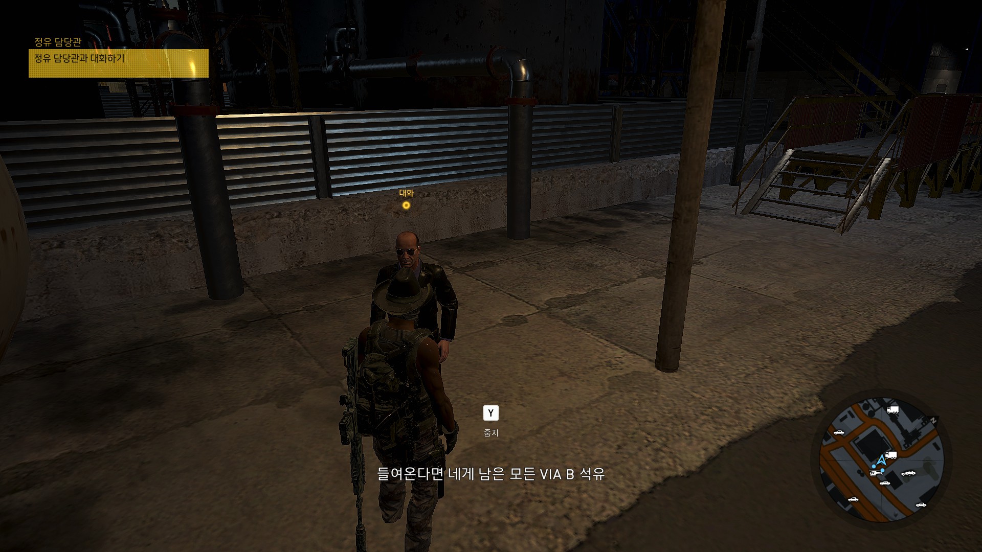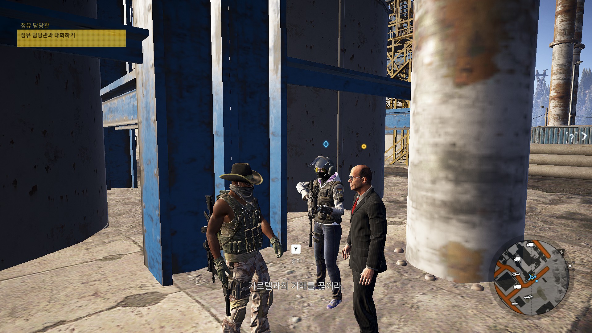 카르텔에 화학물질을 납품하고 있는 정유담당관을 협박하고 있습니다.