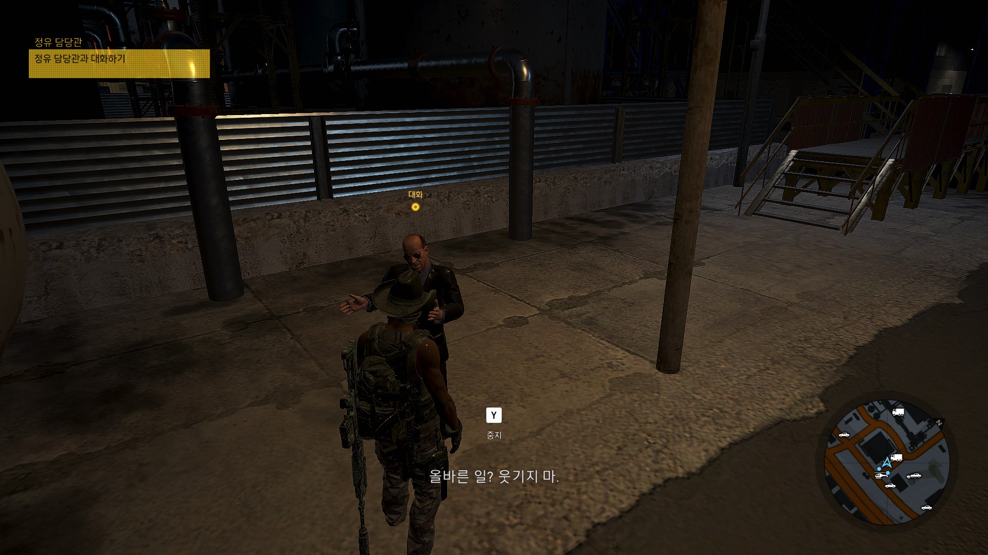카르텔에 화학물질을 납품하고 있는 정유담당관을 협박하고 있습니다.