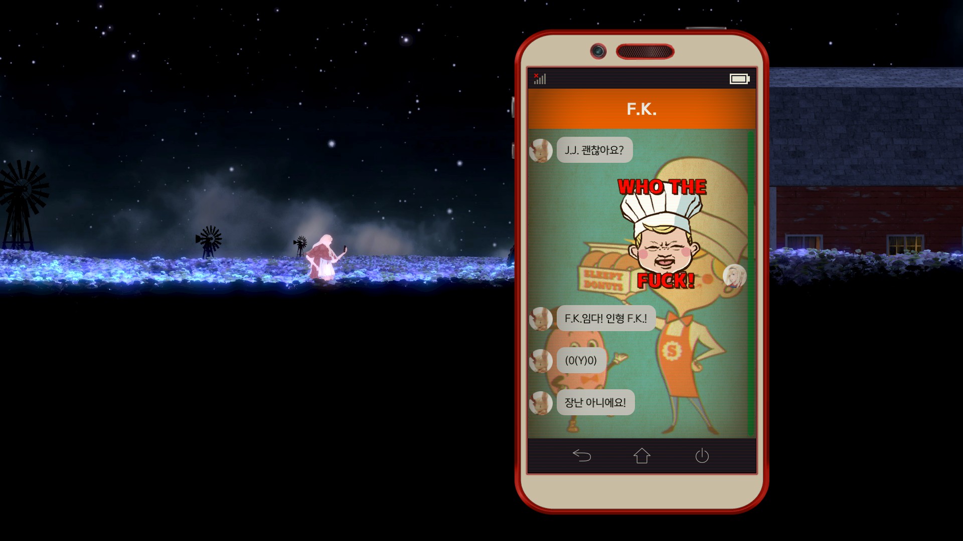 내용을 봐서는 F.K.만 지금 이곳의 상황을 알고 있는거 같고....