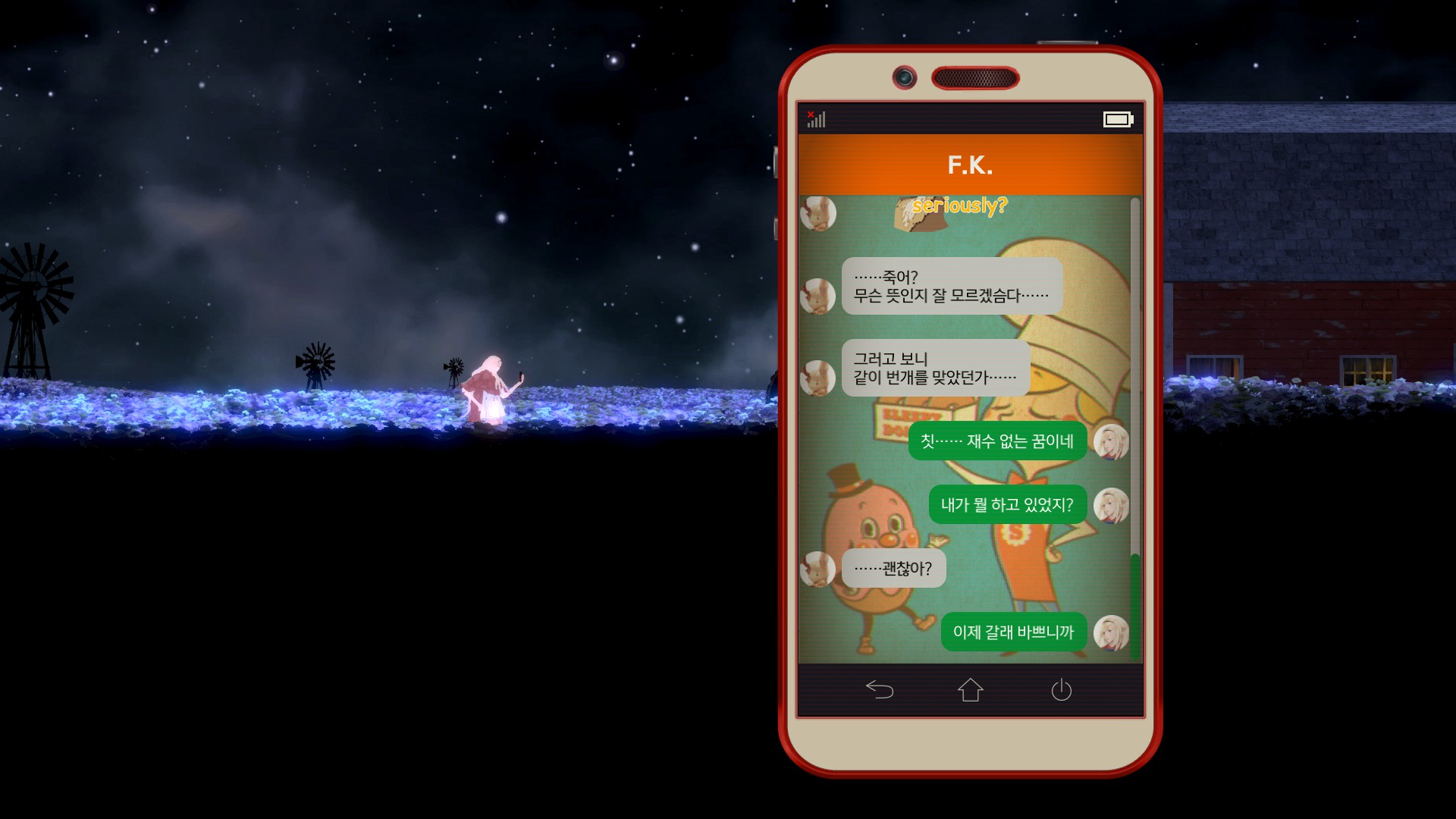내용을 봐서는 F.K.만 지금 이곳의 상황을 알고 있는거 같고....