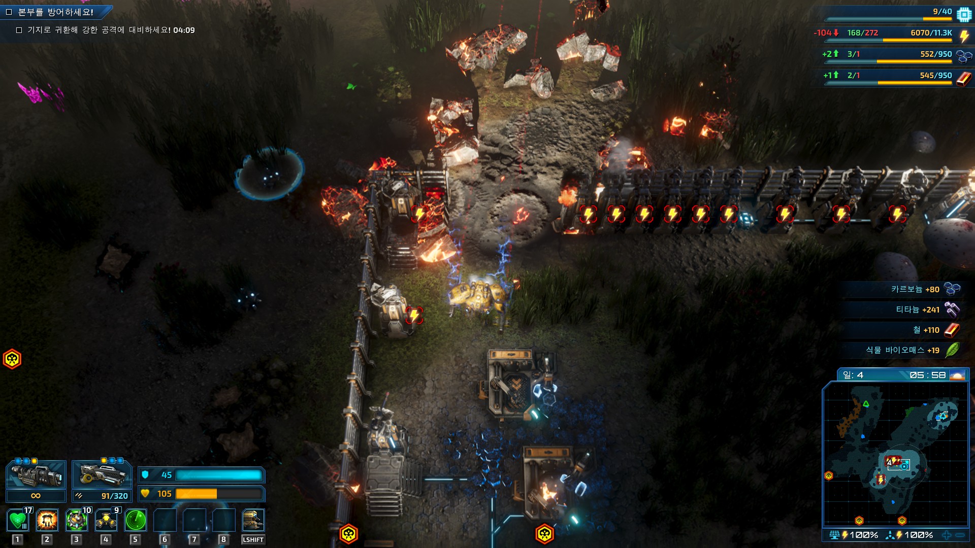 방어건물들이 약해서 직접 처리해야합니다.