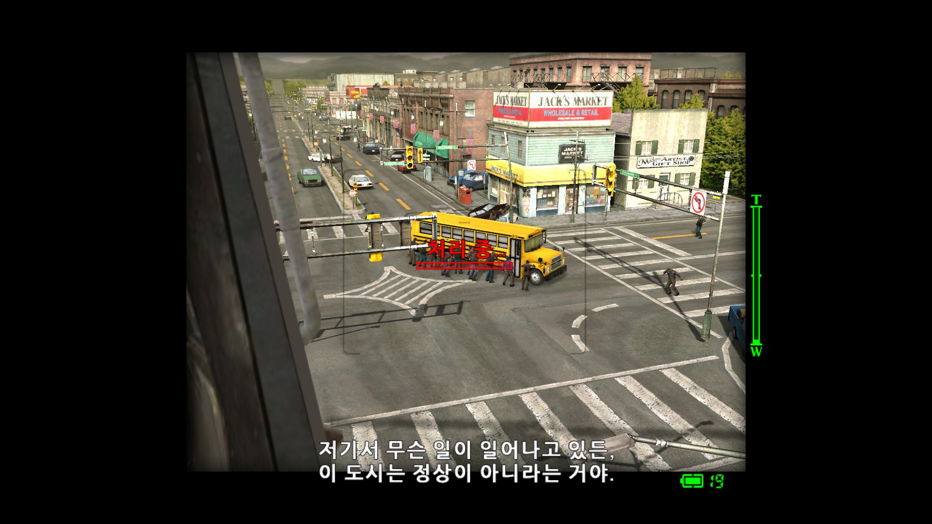 좀비 아웃브레이크가 발생해서 도시가 봉쇄 됐나보네요.