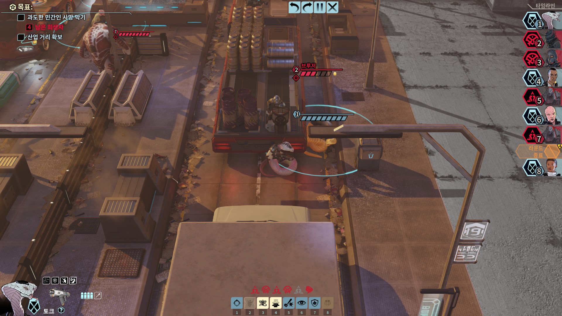이 게임은 전편들과 다르게 타임라인이 한바퀴 돌기전에 최대한 많이 처리해야 합니다.