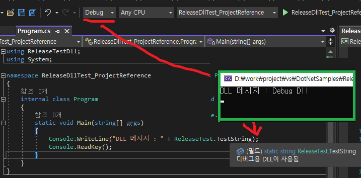 ('release'폴더에 있는 DLL을 참조했는데 'debug'폴더에 있는 DLL을 참조한다!!?)