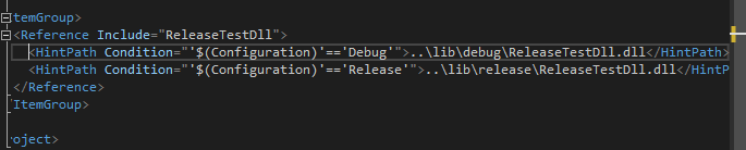 <HintPath Condition="'$(Configuration)'=='Debug'">..\lib\debug\ReleaseTestDll.dll</HintPath>