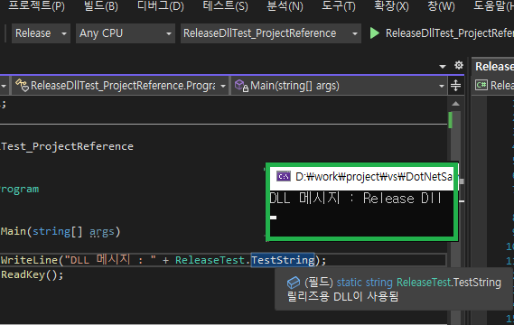 이제 테스트 해보면 원하는 데로 DLL을 참조하는 것을 알 수 있습니다.