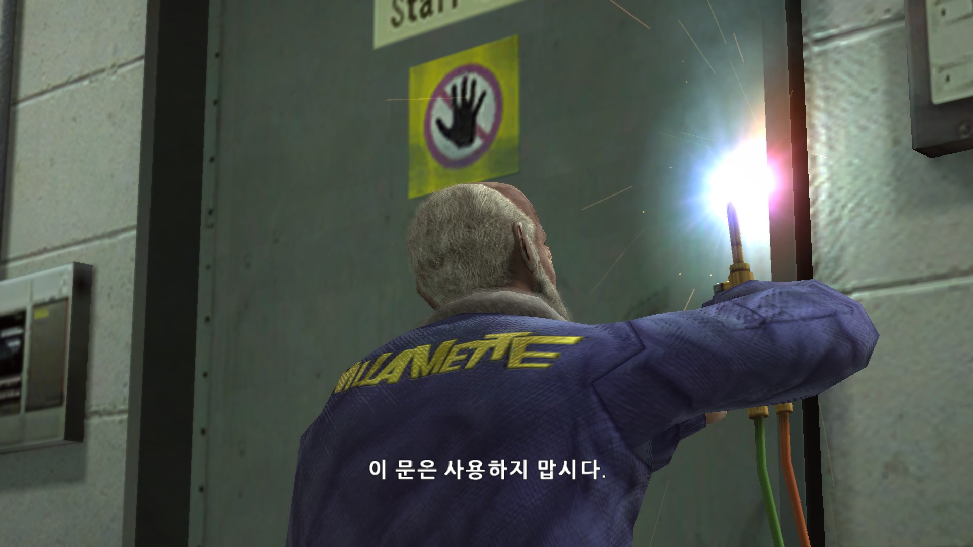 좀비때문에 입구가 막혔으니 용접을 해버리네요 ㅎㄷㄷ