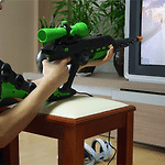 정조준의 필수아이탬 받침대다. 적당한 받침대 찾기가 힘들다고 느껴진다. 스코프로 본다고 해서 달라질건 없다 ㅡ.-;; 스코프는 거들뿐;; 스코프모드에서는 보정을 해주기때문에 떨림이 덜하다. 문제는 스코프모드를 안켰을때는 보정적용이 안되기때문에 오이려 스코프모드 안키고 해야 하는 부분에서는 명중률이 떨어진다.(바로 앞에있는넘 마추기가 더힘들다-_-;) 대부분의 사람들이 계속 스코프모드를 키고 했으면 하는데.. 다행이도 사일런트 스코프2부터는 스코프모드 사용자 정의가 가능하므로 스코프 크기나 반투명도를 조정하면 계속 키고 하기에도 무리는 없을거 같다. 조준의 만족성은 10점만점에 7점 정도주고 싶다.(패드가 3점, 마우스가 5점이다.) 라이트건인데도 이정도면 괜찬은 편이다. 정가가 6만원 선이 였던것으로 알..