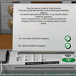아래와 같은 메시지와 함께 물어 봅니다. there has been an incident at snide university. there are 3 people with uncommon cold and they require immediate attention. you have the right equipment and skills, so you should be able to handle this emergency. there is a maximum bonus of 1200 available for handling this emergency. if you fail, though, your reputation will be seriously dented. - yes. I am ready to handle..